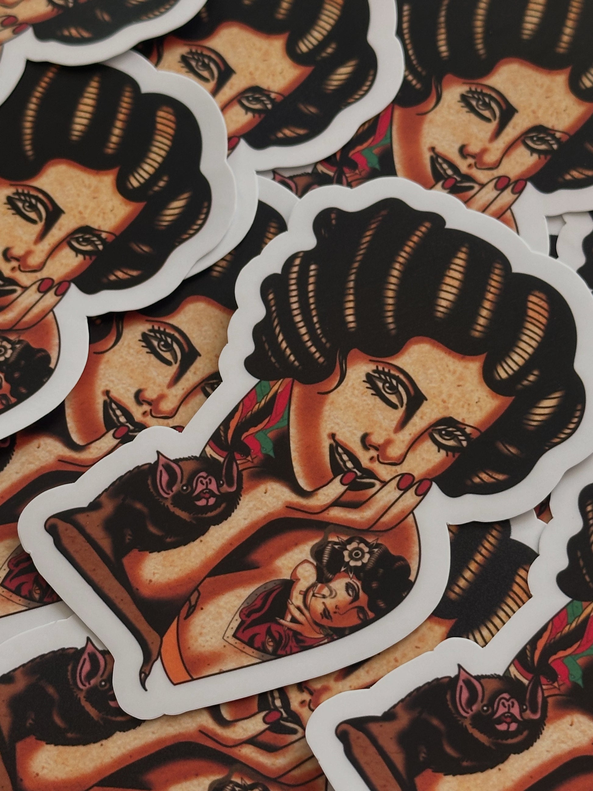 Classic pin up with a lil bat friend. “Hes just a lil guy”